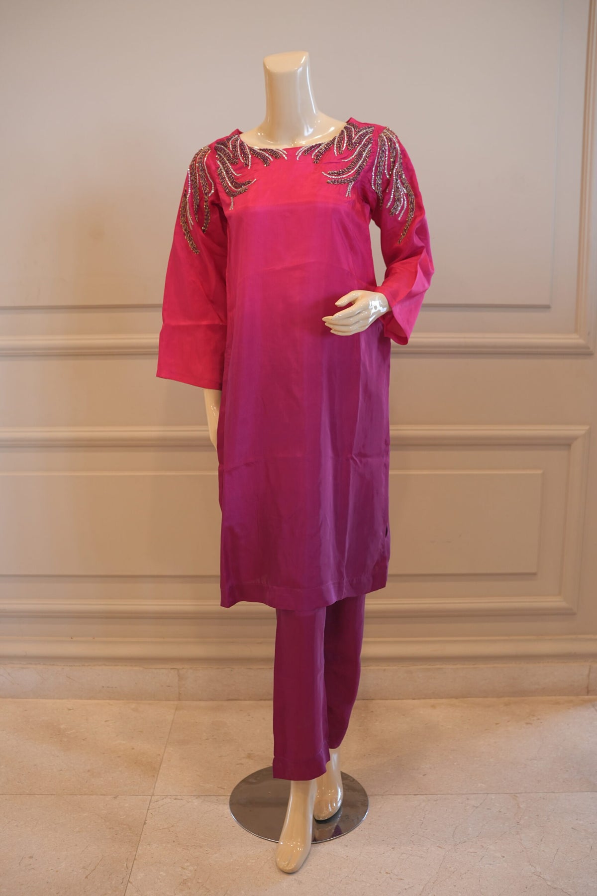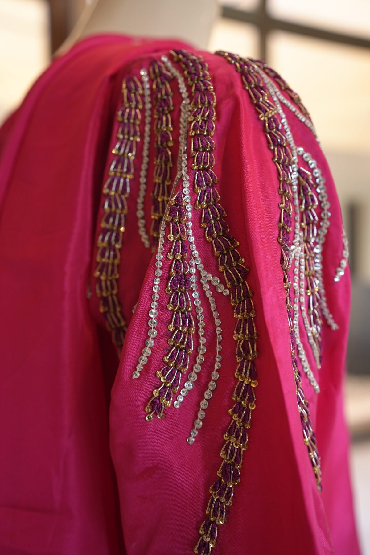 This Pink Hand-Embroidered Silk Suit is a perfect blend of tradition and elegance.